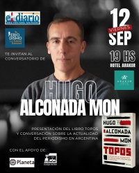 El Viernes 12 de Septiembre de 2025 Hugo Alconada Mon presentará su libro "Topos" en el Hotel Arakur de nuestra ciudad. Además el periodista reflexionará sobre la actualidad del periodismo en Argentina.