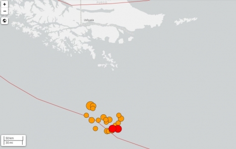 Este viernes se registró un sismo de magnitud 7.4 en el Pasaje Drake, con epicentro a 219 km al sur de Ushuaia, seguido de 20 réplicas. A las 14:59 horas, dos eventos de 6.6 y 6.4 aumentaron la intensidad, ubicados a 288 km de la ciudad fueguina.