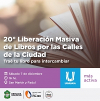 El Sábado 7 de Diciembre de 2019 se realizará la 20° Liberación Masiva de Libros por las Calles de la Ciudad en San Martín y Juana Fadul a las 16:00 hs.