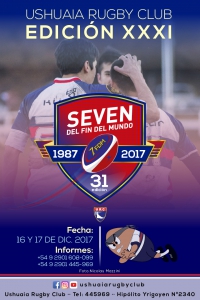 Los días Sábado 16 y Domingo 17 de Diciembre de 2017 se realizará la 31º edición del Seven del Fin del Mundo en la cancha del Ushuaia Rugby Club