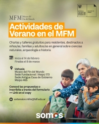 Desde el Jueves 14 de Febrero hasta el Viernes 8 de Marzo de 2024 el Museo del Fin del Mundo -MFM- realizará charlas y talleres destinados a niños/as, familias y adultos/as en general, según la propuesta.