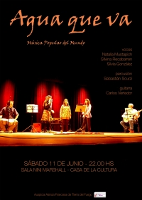El Sábado 11 de Junio de 2011 se presentará el grupo "Agua que va" interpretando música popular del mundo.