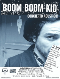El Jueves 11 de Agosto de 2011 Boom Boom Kid presentará un recital acústico en Diada Pub a las 21:00 hs. Entrada anticipada tiene un valor de 25 pesos y en puerta 35 pesos. Se pueden adquirir en Muscaria Skate Shop, Deloqui 75 y Smallville comic store, Paz y 25 de Mayo.