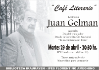 El Martes 29 de Abril de 2014 se realizará el primer Café literario del año denominado "Leemos a Juan Gelman".
