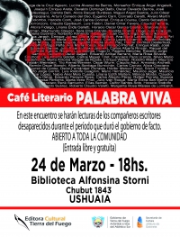 El Lunes 24 de Marzo de 2014 se realizará el Café Literario Palabra Viva en la Biblioteca Alfonsina Storni -Chubut 1843-.