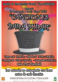 Se agregan nuevas funciones de la obra "Canciones para mirar". En la Sala Ninà Marshall de la Casa de la Cultura, en los siguientes horarios: