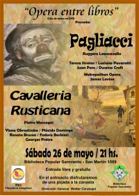 El Sábado 26 de Mayo de 2012 se proyectarán en el Ciclo Ópera entre libros, dos historias apasionadas "Cavalleria Rusticana", de Pietro Mascagni y "Pagliacci" de Ruggero Leoncavallo.