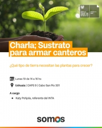 Lunes 19 de Febrero de 2024 se brindará la charla "Sustrato para armar canteros", a cargo de la referente de INTA Katy Pohjola.