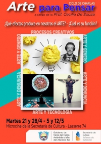 El ciclo de charlas "Arte para pensar" está a cargo de la Profesora Cecilia de Souza. Destinado a artistas y público en general.