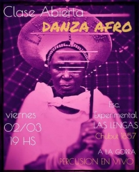 El Viernes 2 de Marzo de 2018 se realizará una Clase Abierta de Danza Afro en la Escuela Experimental Las Lengas. El encuentro es a la gorra, comenzará a las 19:00 hs. y habrá percusión en vivo