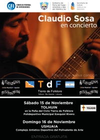El Domingo 16 de Noviembre de 2014 se presentará el folklorista Claudio Sosa en Ushuaia con el espectáculo "Tributo a la Nueva Canción", realizará un recorrido a partir de la Canción Latinoamericana, con un homenaje a Mercedes Sosa y a gran parte del Cancionero popular.