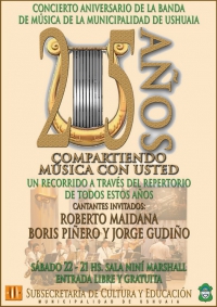 El Sábado 22 de Octubre se celebrará el 25 Aniversario de la Banda de Música de la Municipalidad con un concierto. El repertorio recorrerá estos 25 años, contará con la participación de los cantantes Roberto Maidana, Boris Piñero y Jorge Gudiño.