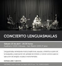 El Sábado 23 de Abril de 2016 el grupo LenguasMalas se presentará en concierto en el Auditorio OSDE, ubicado en San Martín 1055 1° piso.
