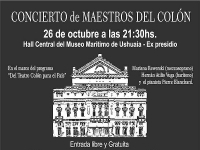 El Viernes 26 de Octubre de 2012 se realizará el Concierto de Maestros del Colón, en el marco del Programa "Del Teatro Colón para el PaÃs". Se presentarán Mariana Rewerki, mezzosoprano; Hernán Atilio Vuga, barÃtono y el pianista Pierre Blanchard.