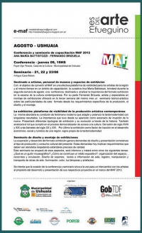 Destinado a artistas, personal de museos y espacios de exhibición se realizará una Conferencia el Jueves 9 de Agosto de 2012 en el Foyer de la Casa de la Cultura a las 19:00 hs. La misma estará a cargo de la curadora Ana MarÃa Battistozzi.