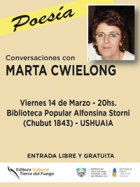 El Viernes 14 de Marzo de 2014 se realizará el evento de poesía Conversaciones con Marta Cwielong.