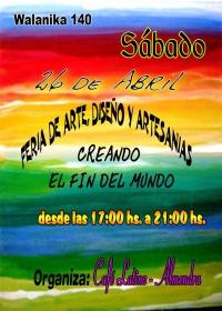 El Sábado 26 de Abril de 2014 se llevará a cabo la feria de diseño y artesanías "Creando el fin del mundo". La feria tendrá lugar en Café Latino -Walanika 140- de 17:00 a 21:00 hs.