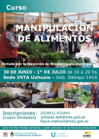 El Jueves 30 de Junio y el Viernes 1° de Julio de 2016 se realizará el curso " Manipulación de Alimentos", dictado por la Dirección de Bromatología Municipal.
