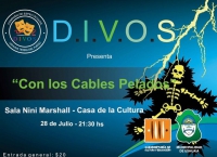 El Sábado 28 de Julio de 2012 la compañÃa teatral D.I.V.O.S. presenta "Con los Cables Pelados" en la Sala Ninà Marshall de la Casa de la Cultura a las 21:30 hs. Entrada general $ 20.-