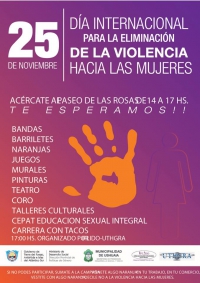 El Día Martes 25 de Noviembre de 2014 se realizarán actividades en el marco del Día Internacional para la Eliminación de la Violencia hacia las Mujeres.