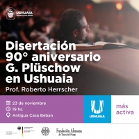 El Viernes 23 de Noviembre de 2018 el profesor Roberto Herrscher brindará una disertación con motivo del 90º aniversario del arribo de Gunther Plüschow a Ushuaia.