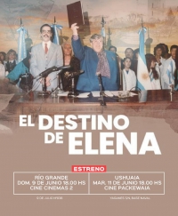 "De los creadores de "Los Sueños del Gobernador Campos", presentamos "El Destino de Elena", película que narra la vida de Elena Rubio de Mingorance, importantísima figura de la política de Tierra del Fuego, presidenta de la Convención Constituyente que en 1991 redactó la Constitución de nuestra provincia".
