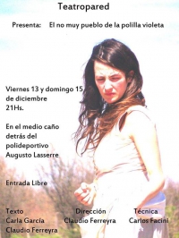 Los días Viernes 13 y Domingo 15 de Diciembre de 2013 Teatropared presenta la obra El no muy pueblo de la polilla violeta en el medio caño detrás del polideportivo Augusto Lasserre a las 21:00 hs. con entrada libre.