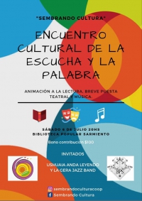 El sábado 6 de julio se realizará el "Encuentro cultural de la escucha y la palabra", animación a la lectura, breve puesta teatral y música.
