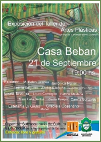 El Viernes 21 de Septiembre de 2012 inaugura la Exposición de alumnos del Taller de Artes Plásticas, dictado por la Prof. Sabrina Laurenzo. Participarán en la inauguración Ximena Rosé Cholvis, Rodi Rojas y BenjamÃn Nieto.