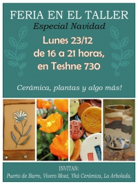 El Lunes 23 de Diciembre de 2019 se realizará la Feria en el Taller Especial Navidad, en Teshne 730 de 16:00 a 21:00 hs.