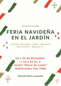 El Sábado 22 y Domingo 23 de Diciembre de 2018 se realizarà la "Feria navideña en el Jardín".
