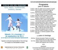 El Sábado 10 y Domingo 11 de Septiembre de 2011 se realizarna los festejos por el DÃa del Maestro. Habrá cine, teatro, conferencias, música y danzas.