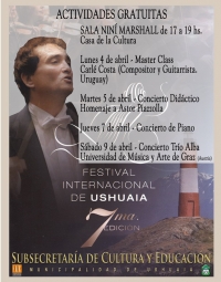 En el marco del Festival Internacional de Ushuaia 7° Edición, Se han programado las siguientes actividades gratuitas: