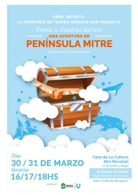 Los días sábado 30 y domingo 31 de marzo de 2019 la compañía de teatro Onírico Sur pondrá en escena la obra infantil "Frente a nuestras narices. Una aventura en Península Mitre".