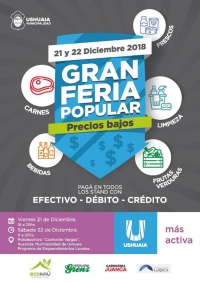 El Viernes 21 de 16:00 a 20:00 hs. y el Sábado 22 de Diciembre de 2018 de 11:00 a 20:00 hs. tendrà lugar la Gran Feria Popular Precios Bajos.