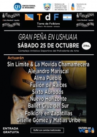 El Sábado 25 de Octubre de 2014 se llevará a cabo la Gran Peña en el marco del Ciclo Tierra de Folklore.