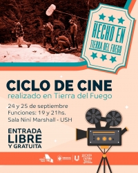 Los días Miércoles 24 y Jueves 25 de Septiembre de 2025 llevará a cabo el Ciclo de Cine Hecho en Tierra del Fuego en la Sala Niní Marshall de la Casa de la Cultura.