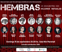 El Domingo 15 de Septiembre de 2019 se pondrá en escena "Hembras: Un encuentro con mujeres notables". Se trata de un espectáculo de teatro leído que presenta la vida y obra de siete mujeres fundamentales en la historia política y cultural de nuestro país.