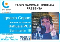 El Sábado 6 de Diciembre de 2014 Igancio Copani se presentará en Ushuaia Restó Pub a las 21:00 hs.