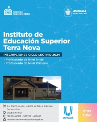 Hasta el Viernes 1° de Marzo inclusive están abiertas las inscripciones a las carreras de profesorado de Nivel Inicial y Nivel Primario del Instituto de Educación Superior "Terra Nova" para el ciclo lectivo 2024.