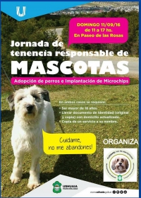Se realizarán adopciones e implantación de microchips. Para adoptar es requisito ser mayor de 18 años, llevar DNI (original y copia) con domicilio actualizado y una copia de un servicio a su nombre.