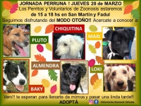 El Jueves 28 de marzo de 2019 perros que viven en caniles de Zoonosis estarán acompañados por Voluntarios en San Martín y Fadul esperando la oportunidad de ser adoptados.