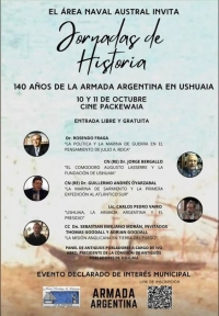 Los días 10 y 11 de octubre de 2024 se realizarán las Jornadas de Historia "140 años de la Armada Argentina de Ushuaia" en el Cine Packewaia con entrada libre y gratuita.