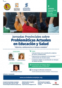 Se llevarán a cabo los días 13 y 14 de Noviembre de 2015 las Jornadas Provinciales sobre Problemáticas actuales en educación y salud.