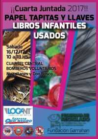 El Sábado 16 de Diciembre de 2017 se realizará la última juntada de papel, tapitas y llaves de bronce para el Hospital Garrahan de 10:00 hs. a 18:00 hs. en el Cuartel Central Bomberos Voluntarios (Magallanes y Don Bosco). En esta oportunidad también se recibirán "libros infantiles en buen estado" que serán donados.