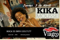 El Jueves 3 de Abril de 2014 Kika Mousse se presentará en vivo en Viagro Bar -Roca 55-. Bar abierto desde las 20:00 hs. entrada gratuita.