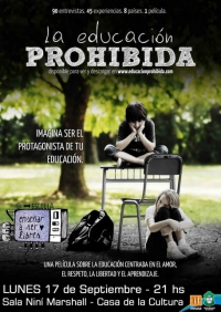 El Lunes 17 de Septiembre de 2012 se proyectará "La educación prohibida". "Una pelÃcula sobre un paradigma educativo basado en la cooperación, centrado en el niño y el respeto por los procesos de desarrollo humano".