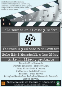 El Viernes 14 y Sábado 15 de Octubre de 2011 se realizará el espectáculo musical "La Música en el Cine y la Tv". Ennio Morricone -The Mission- Lalo Schrifrin's-Mission Impossible- John Williams-Artificial Intelligence- Vangelis-Blade Runner- entre otros. Música de series y más.