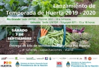 El sábado 7 de septiembre de 2019 se realizará el Lanzamiento de Temporada de Huerta 2019. Entrega de kits de semillas del Programa Pro Huerta, talleres, capacitaciones y stands.