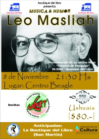 El Martes 8 de Noviembre de 2011 se presentará Leo Masliah con su espectáculo de música y humor.